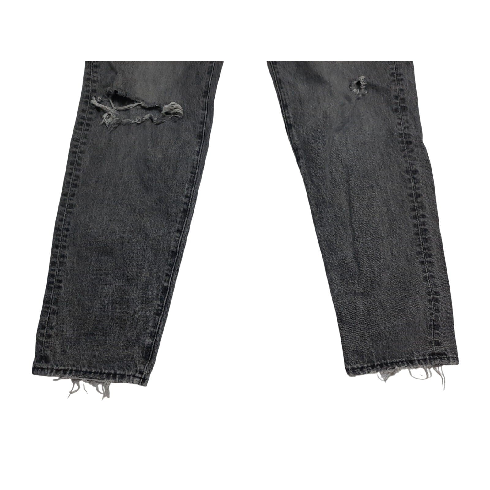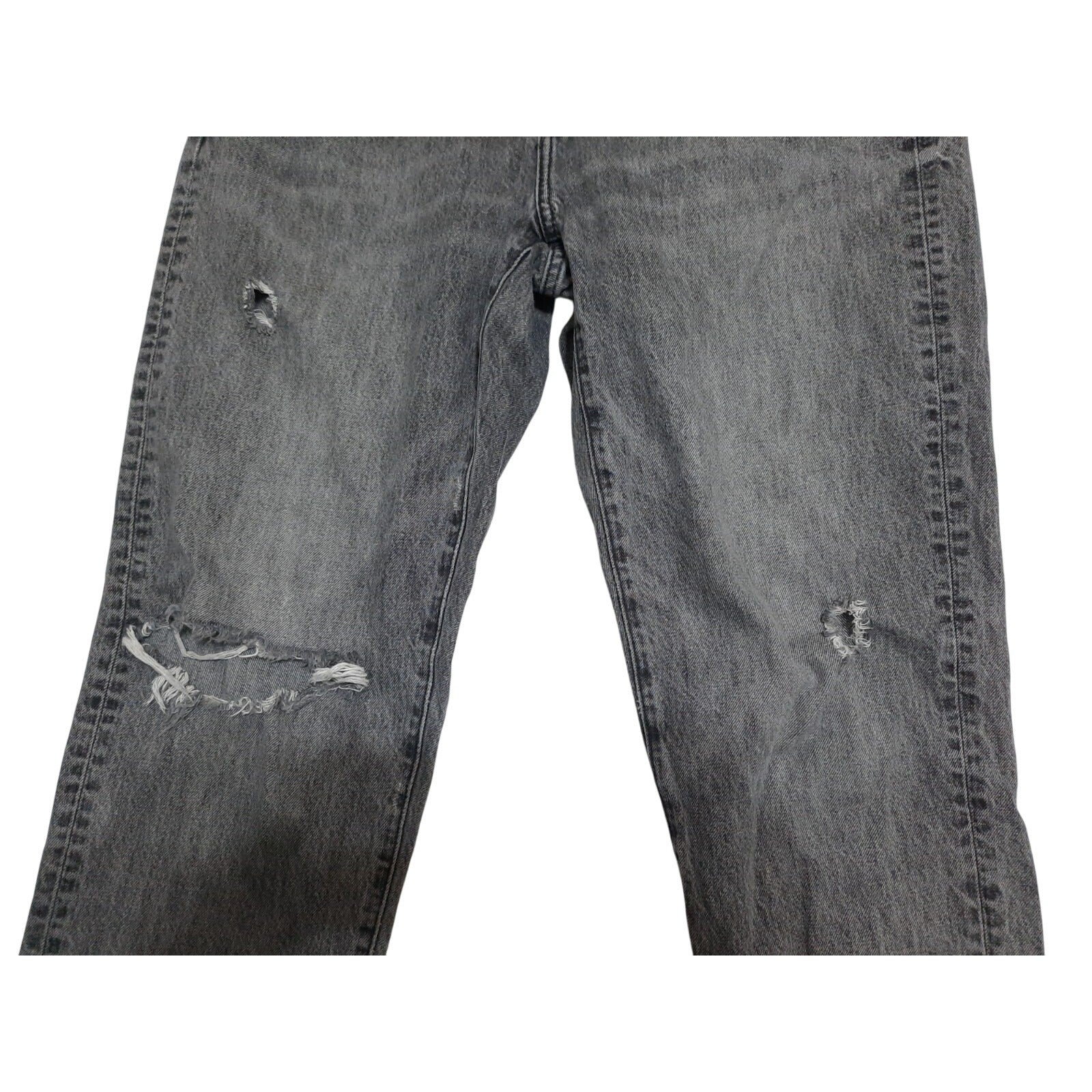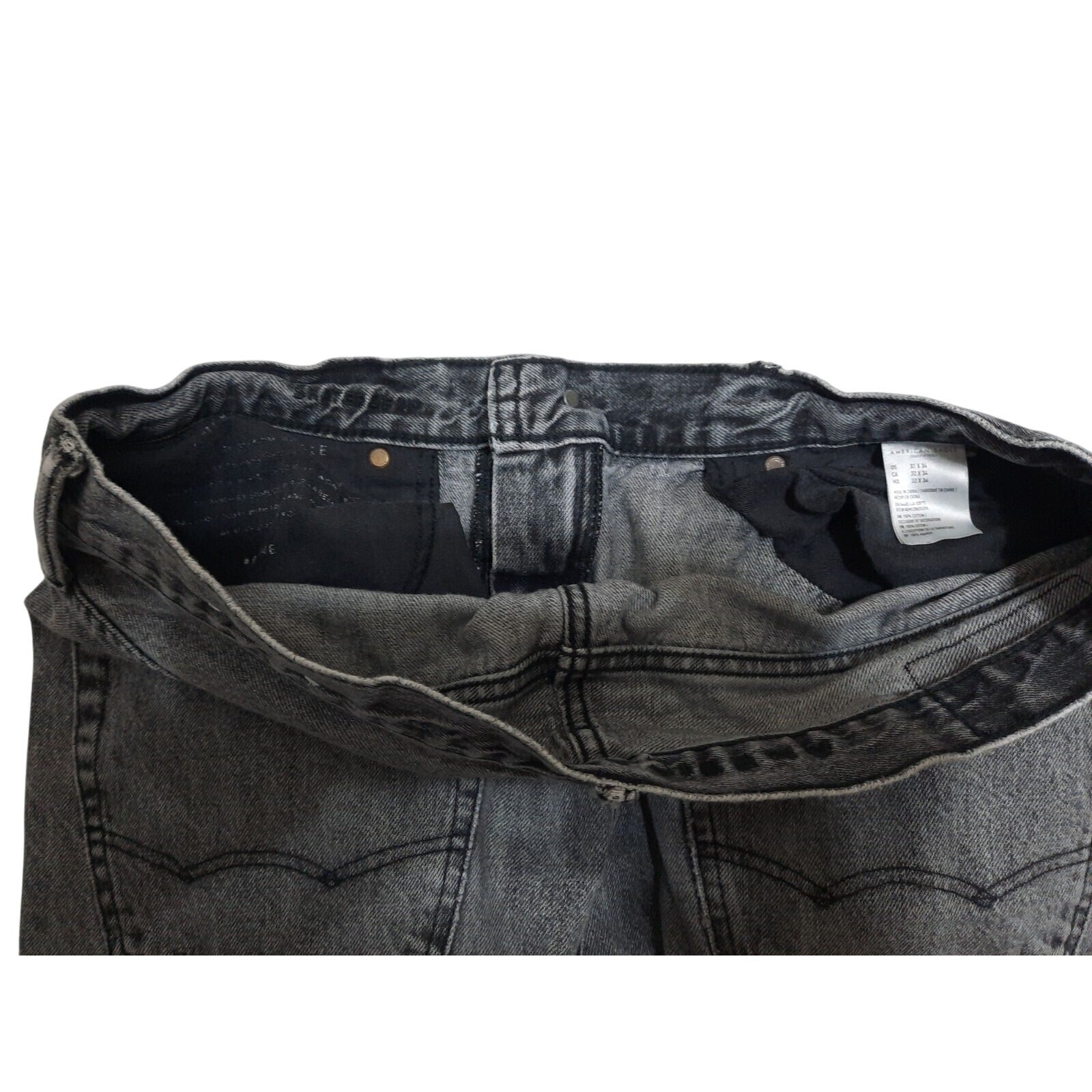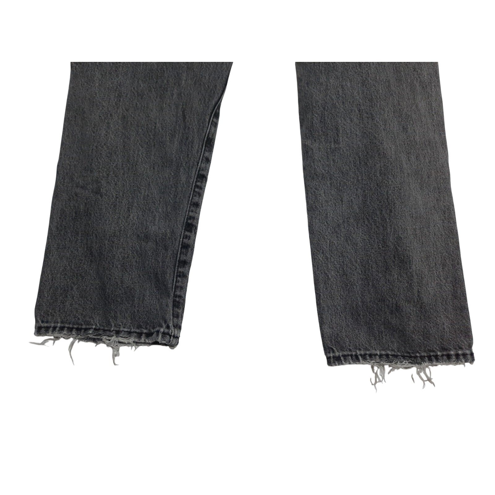 These Levi's jeans offer a classic straight-leg fit with edgy distressing, a faded black wash, and frayed hems โ perfect for casual, everyday wear.