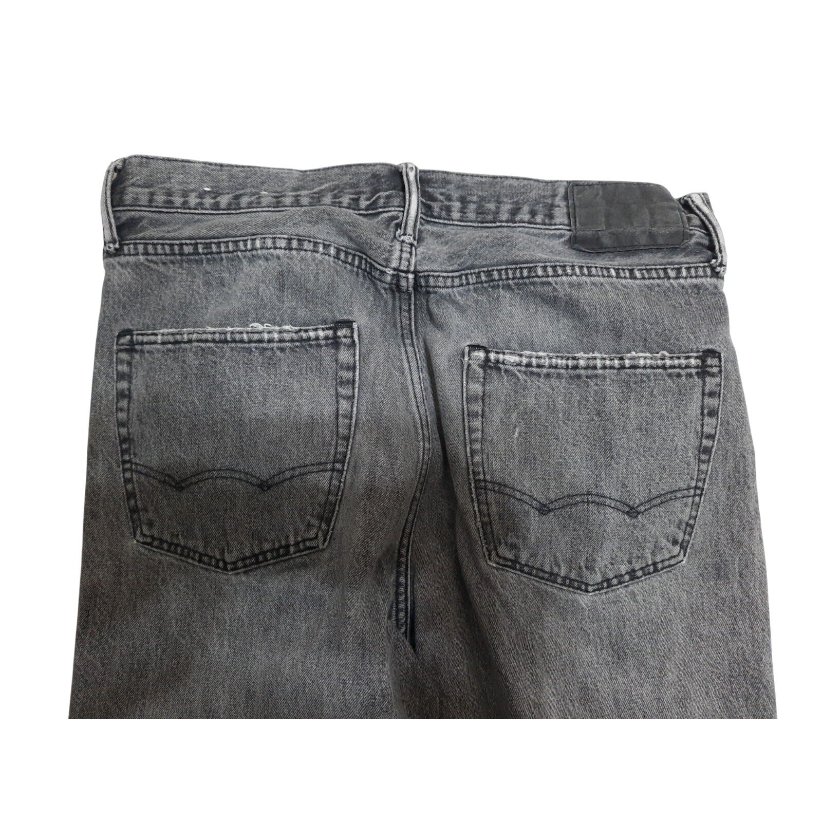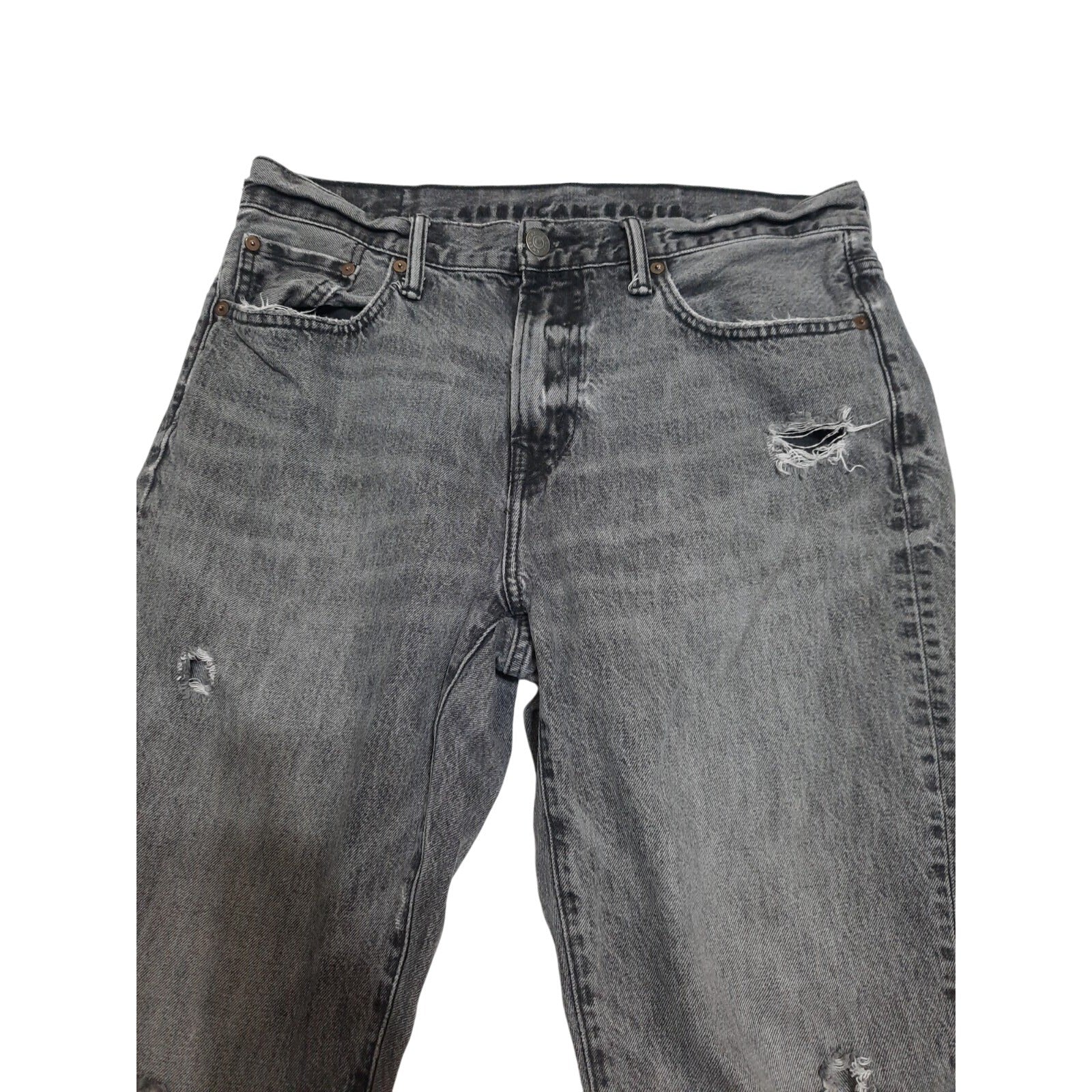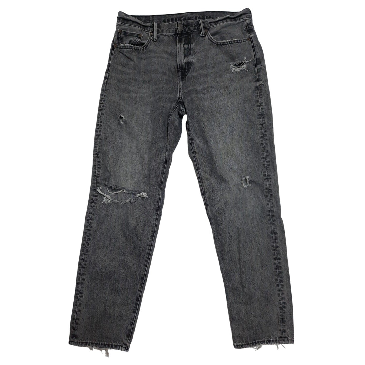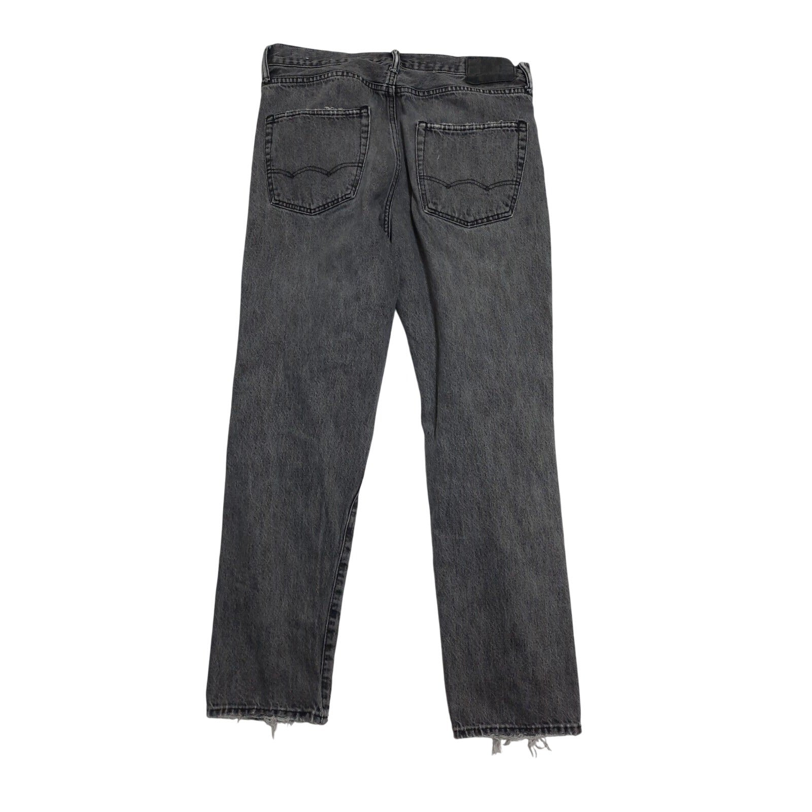 These Levi's jeans offer a classic straight-leg fit with edgy distressing, a faded black wash, and frayed hems โ perfect for casual, everyday wear.