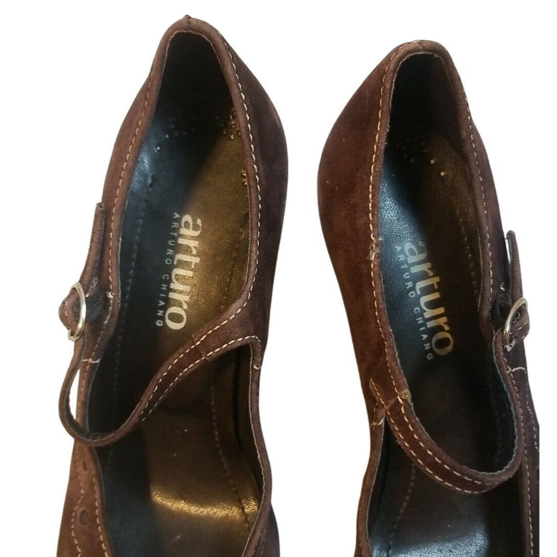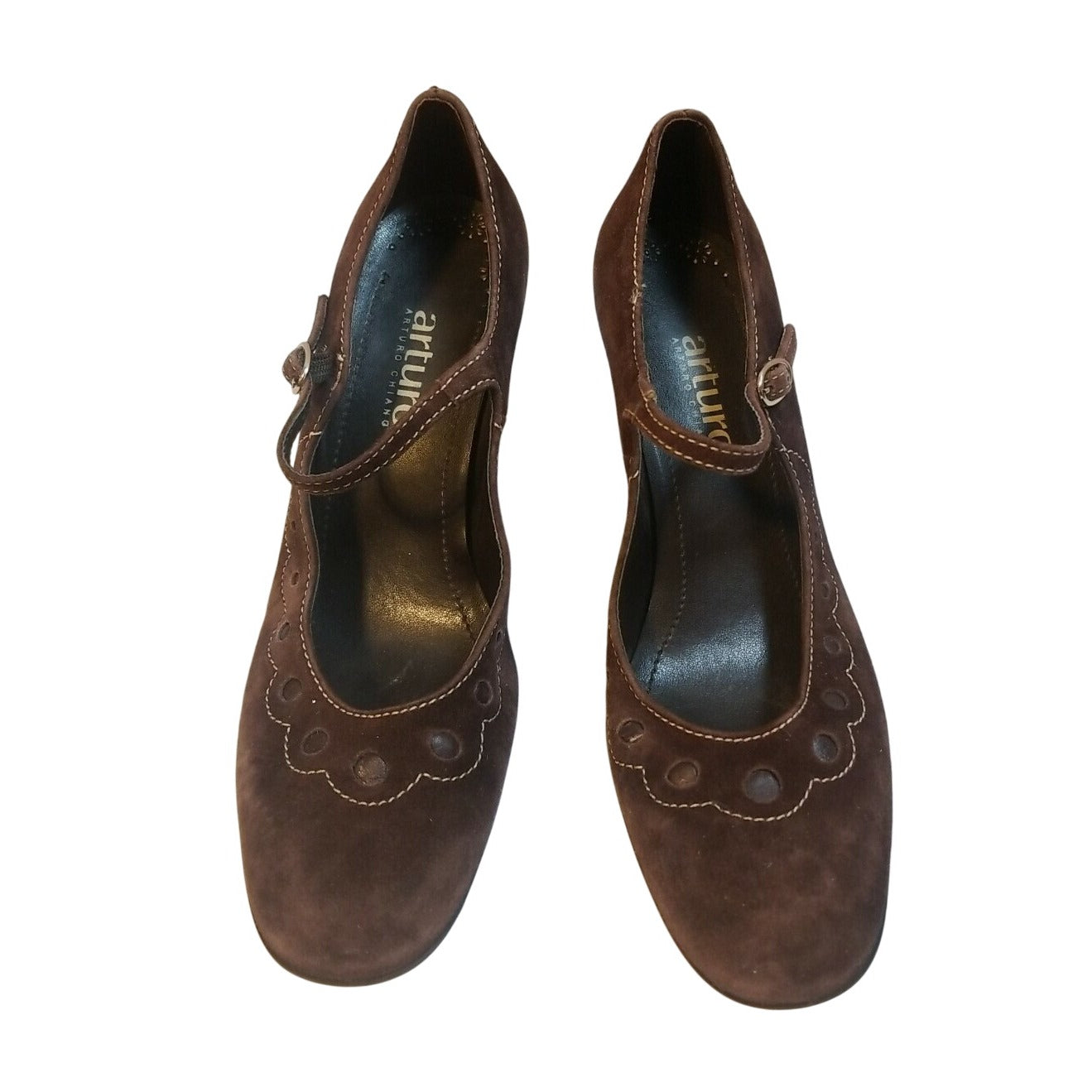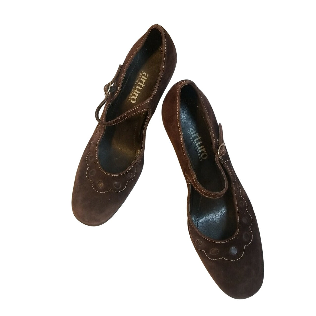 Arturo Chiang Dark Brown Suede Heels size 6.5 M Leather Brazil