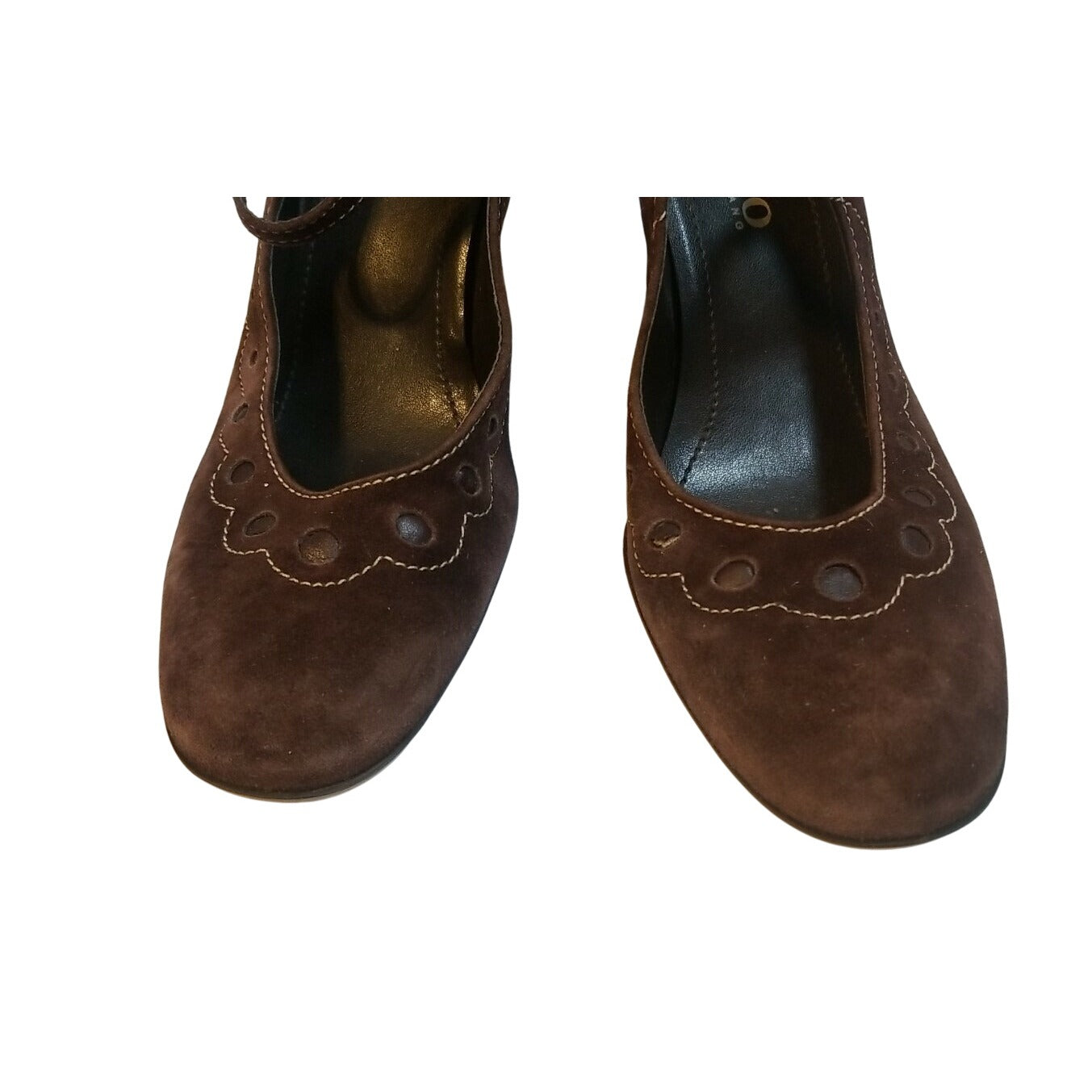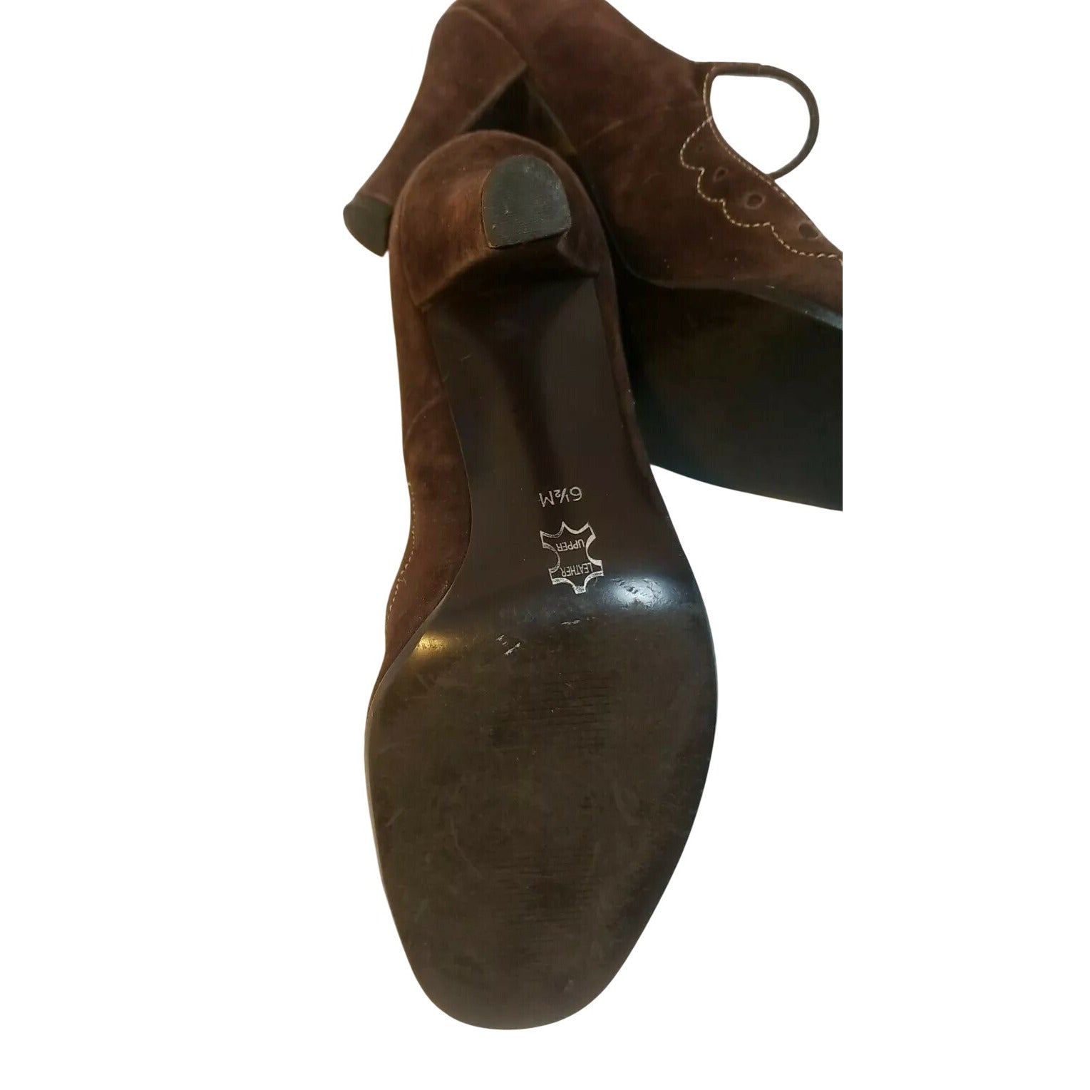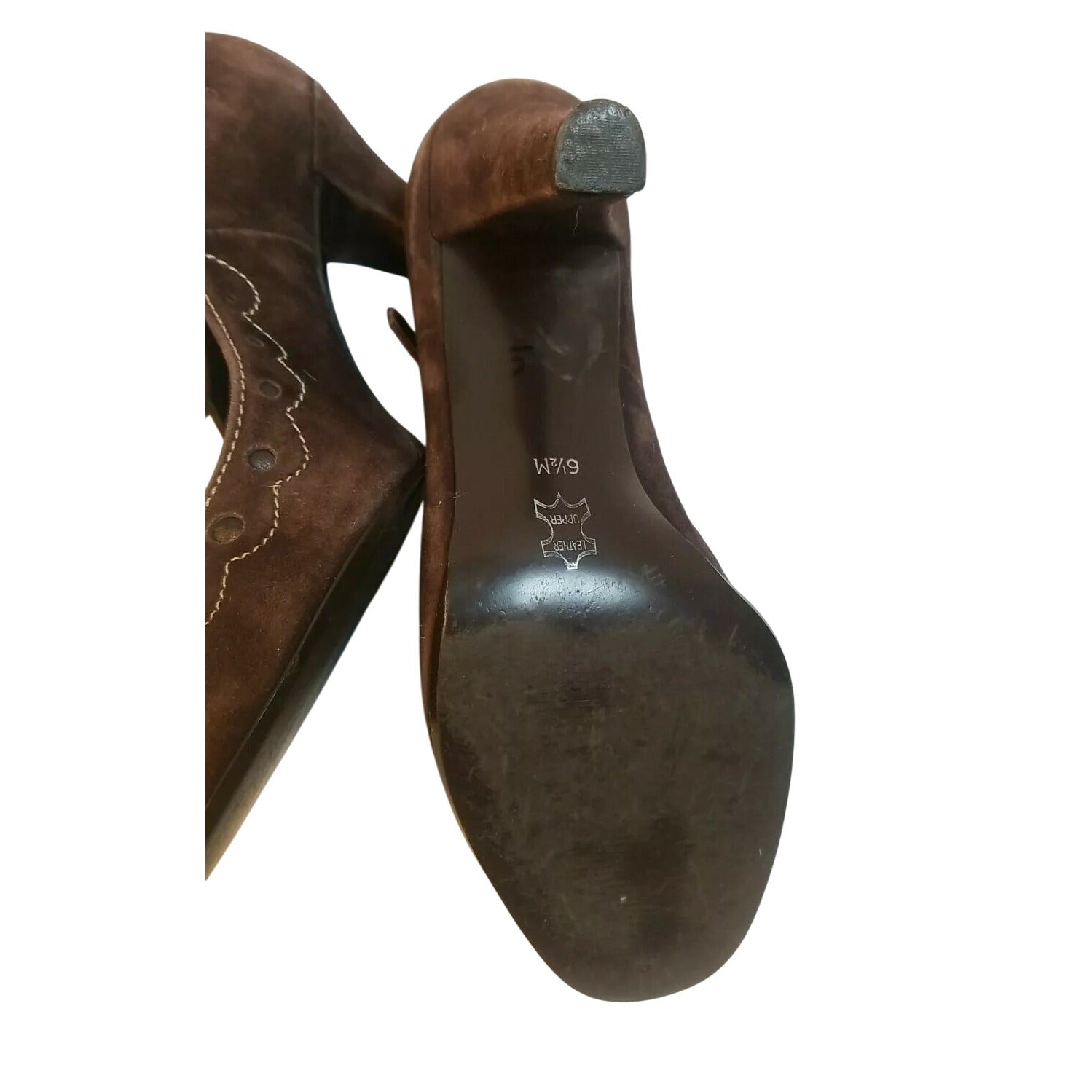Arturo Chiang Dark Brown Suede Heels size 6.5 M Leather Brazil