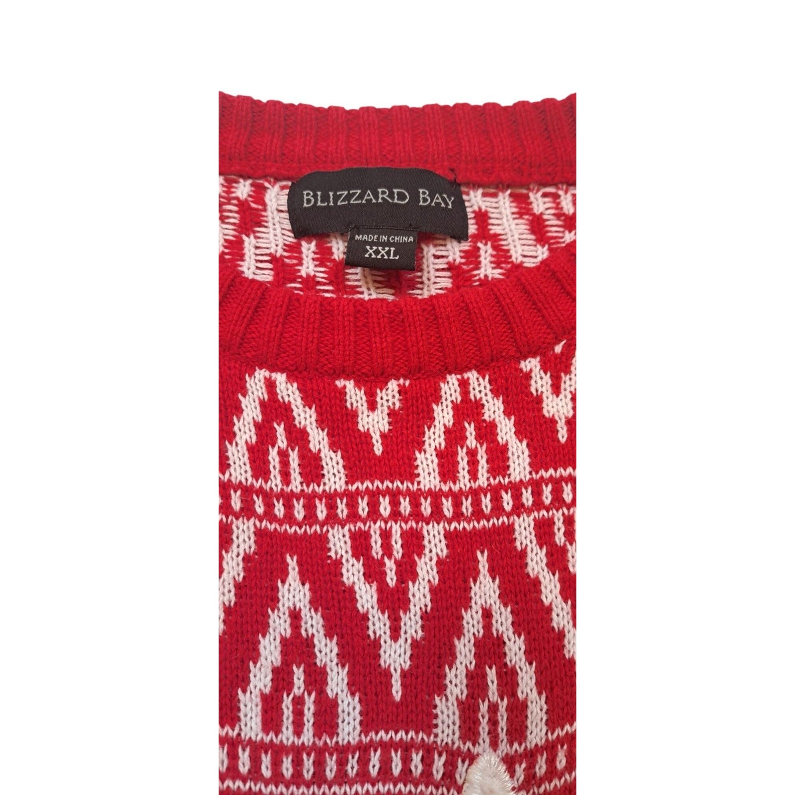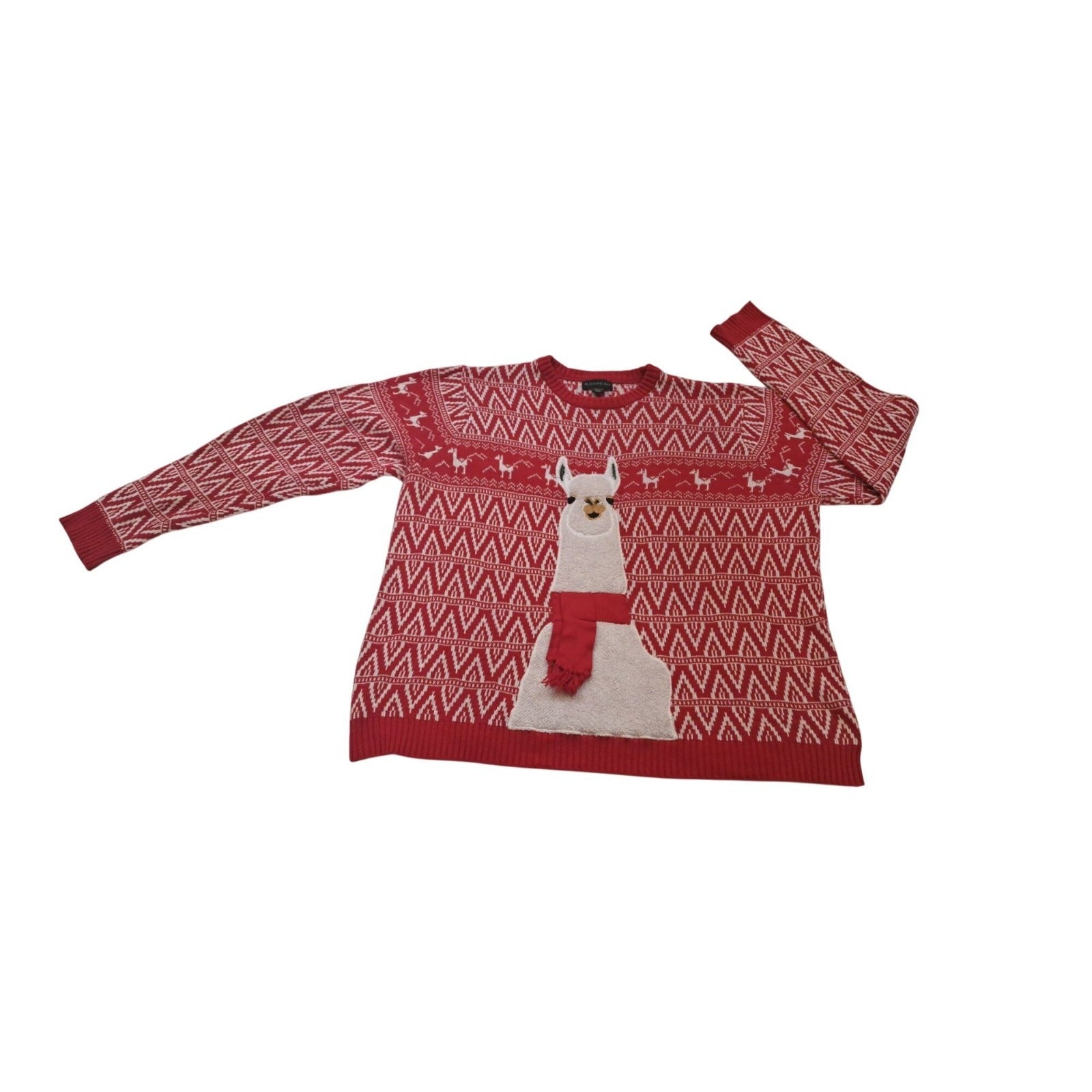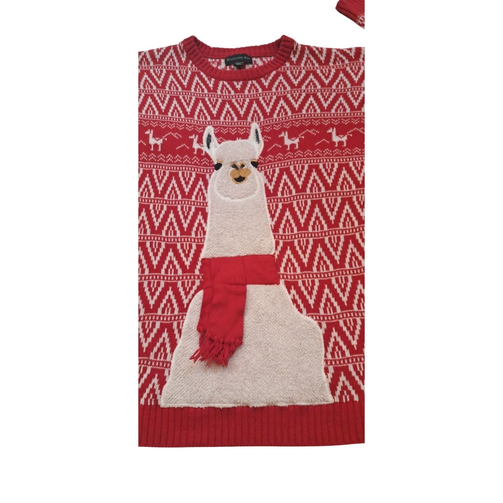 Blizzard Bay Red XXL Ugly Christmas Sweater featuring a festive llama with a scarf. This cheerful sweater offers warmth and playful holiday style with its vibrant red color and soft, comfortable knit material โ perfect for seasonal gatherings.