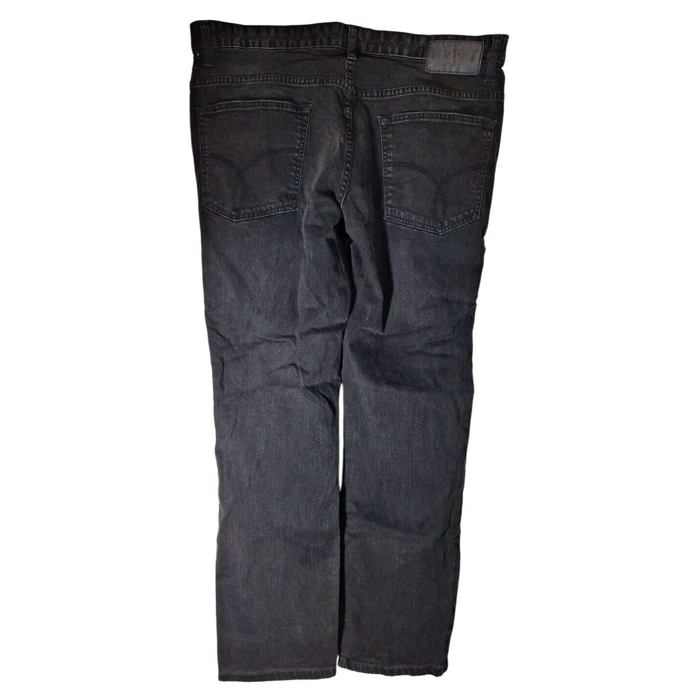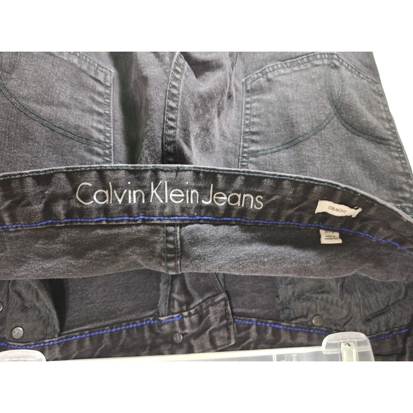 These Calvin Klein jeans feature a contemporary straight-leg design in dark wash denim, offering durability and a polished casual look.