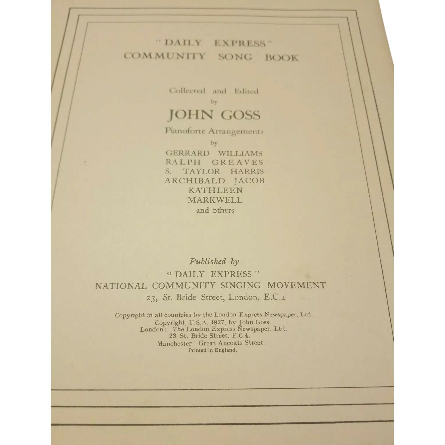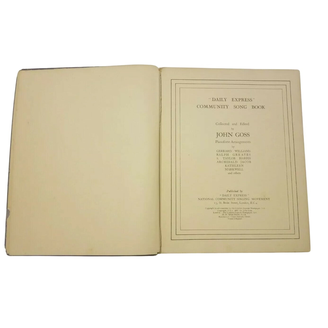 A vintage music collection featuring piano arrangements of community songs from 1927, edited by John Goss. A valuable addition to any music library. "Daily Express" Community Song Book โ 1927 Edition, Piano Arrangements, Vintage Hardcover.