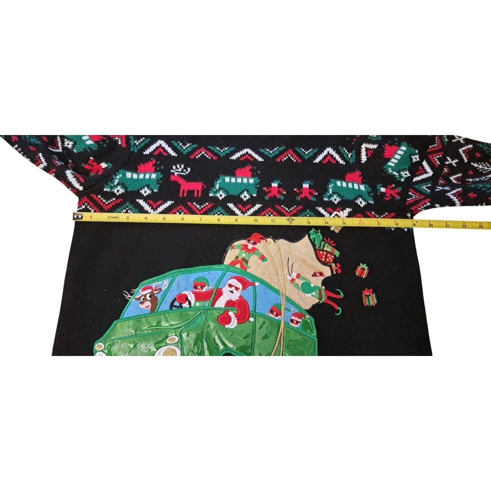 Holiday Time Unisex XL 14-16 Black Knit Ugly Christmas Sweater Santa Van Road Trip