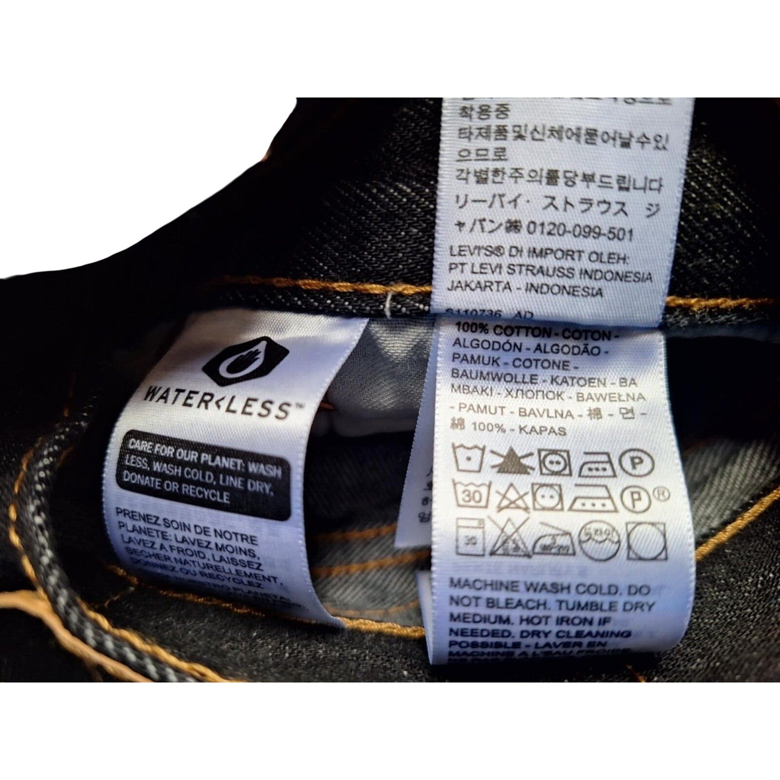 These Levi's 501 Original Fit Waterless Jeans are crafted for durability and style. Made of 100% cotton, they feature a classic straight-leg design and a dark wash finish.