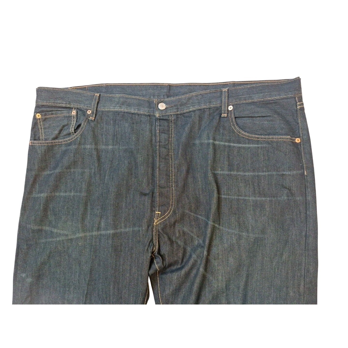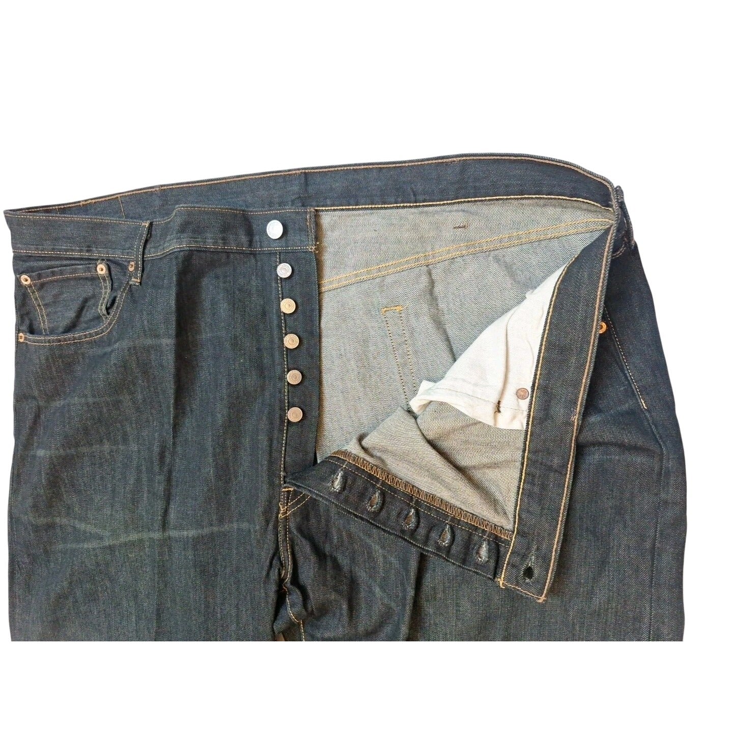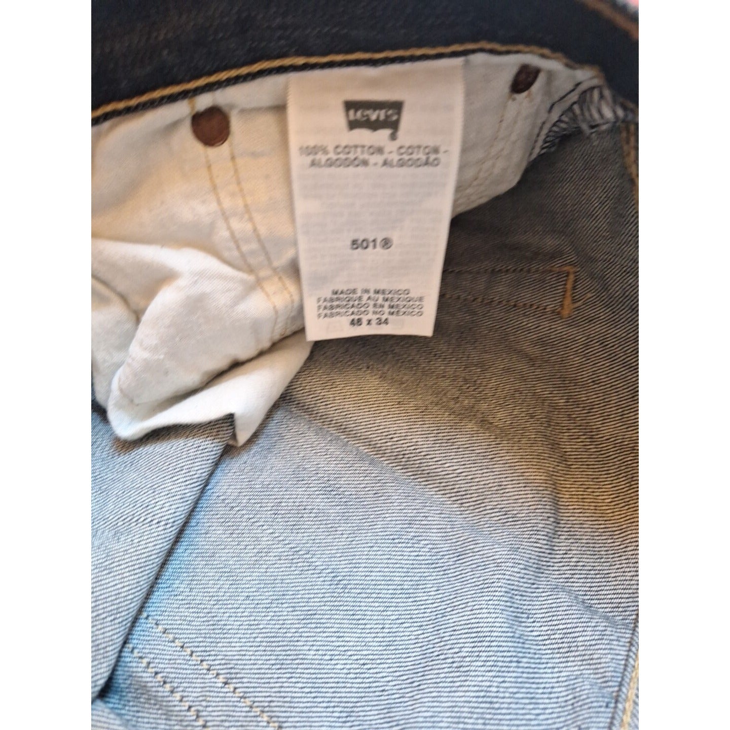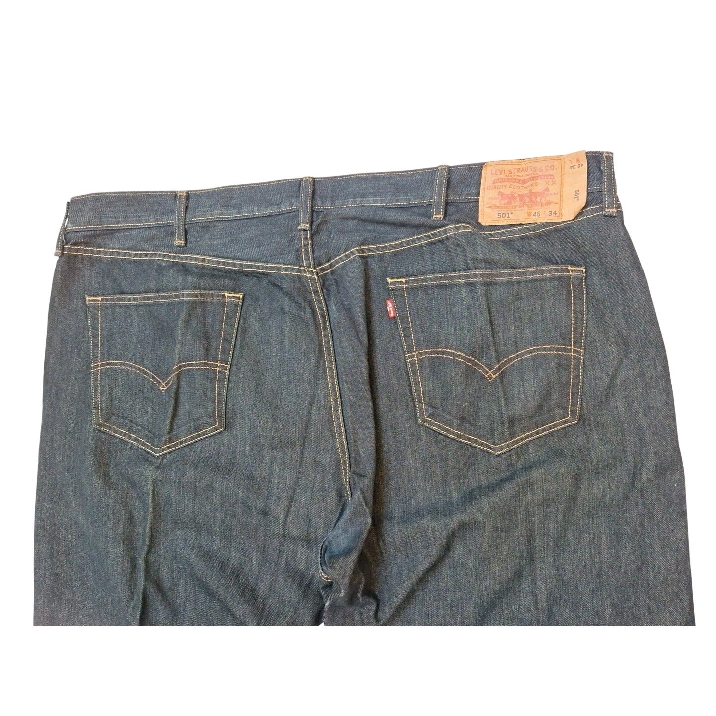 Crafted from durable cotton denim, these Levi's 501 jeans offer a timeless fit with a button fly and dark wash finish. Designed for both comfort and style.