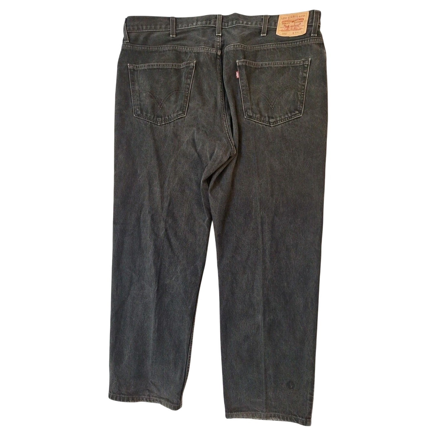 These Levi's 550 relaxed-fit jeans combine durability with comfort, offering a timeless style in black denim. Ideal for casual wear or work environments.