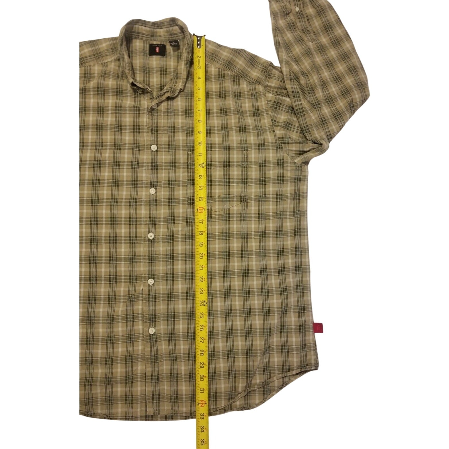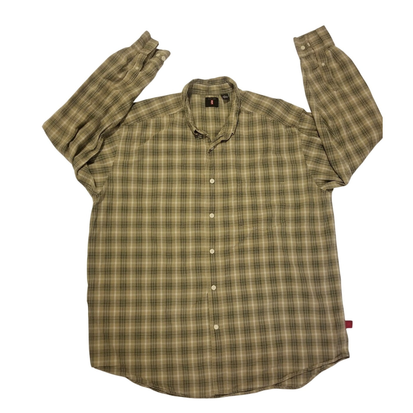 PRODUCT DETAILS Levis Mens Beige & Green Plaid Long Sleeve Button-Up Shirt XL 100% Cotton CasualThis Levi's plaid shirt in... Read more