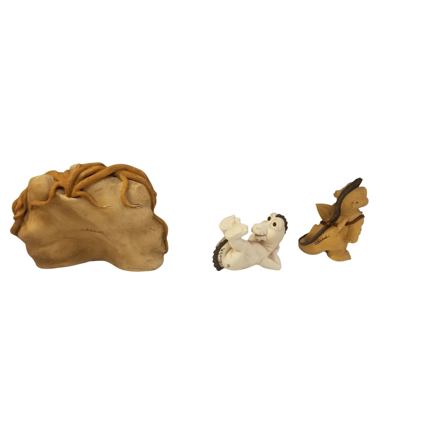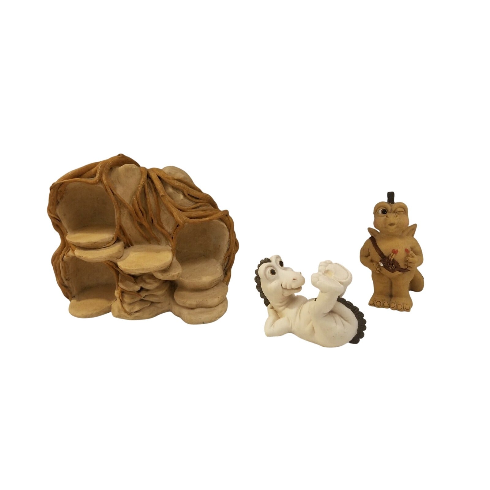 These collectible Dragonsite Pocket Dragons figurines come with a detailed tree display stand, creating a charming showcase set. Handmade in England, these retired pieces are highly sought-after by collectors.