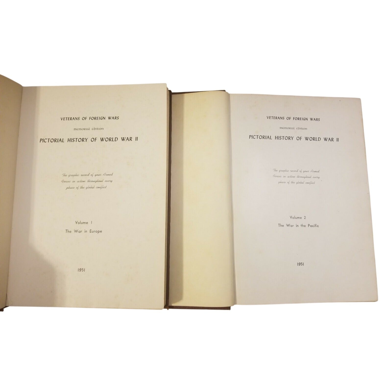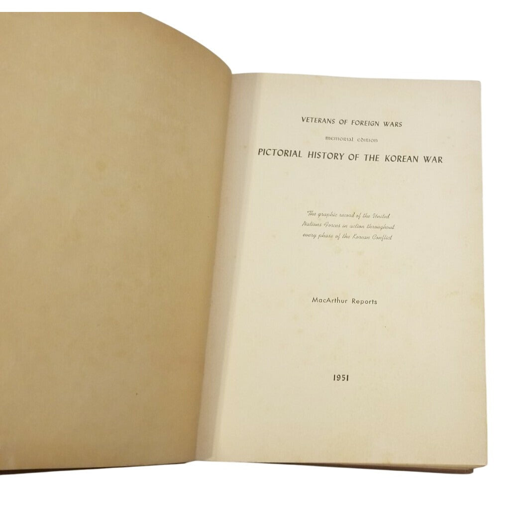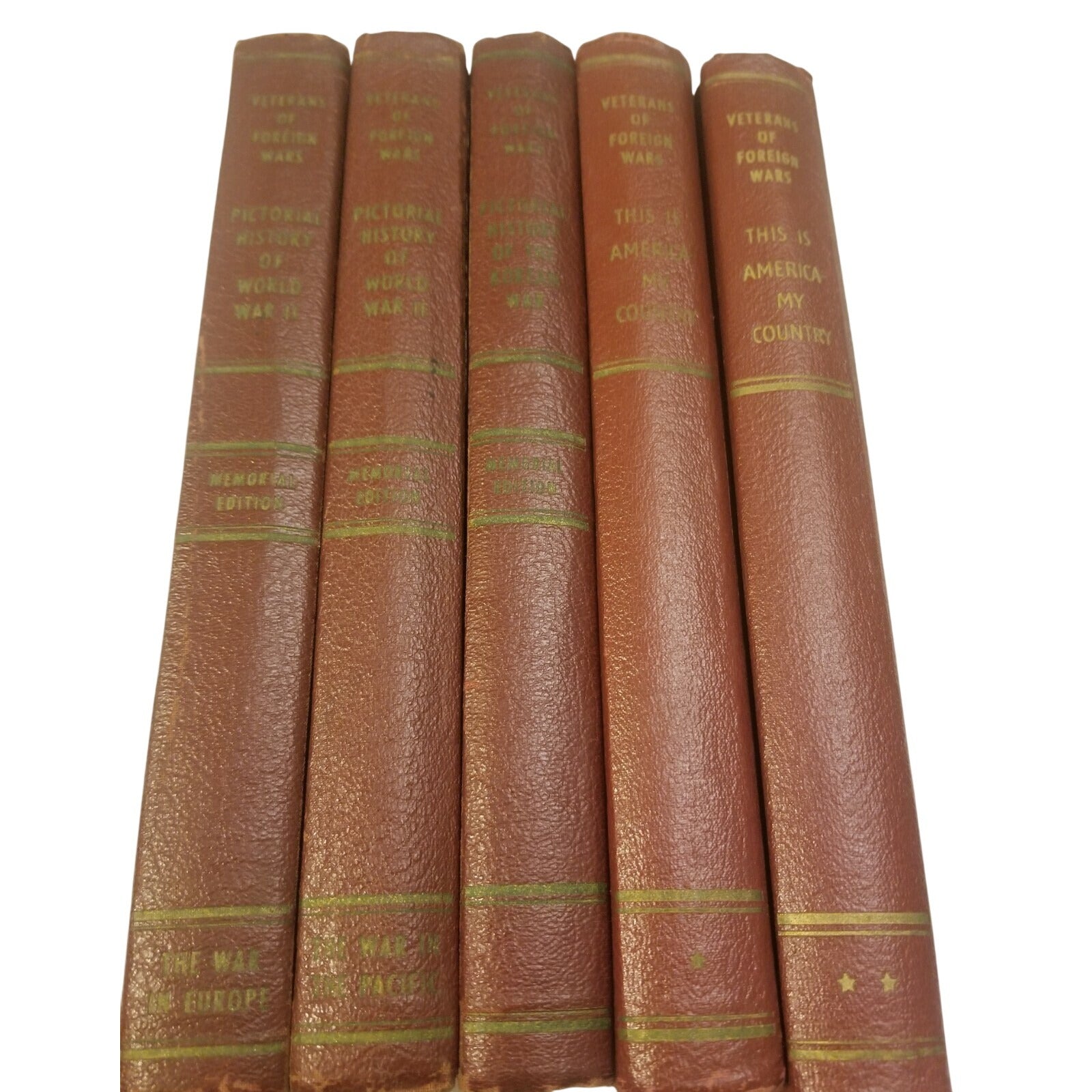 This set includes 5 vintage hardcover books from the Veterans of Foreign Wars Pictorial Histories series along with This Is America My Country. The collection features historical overviews of the Korean War, World War II, and American culture, complete with maps and photographs.