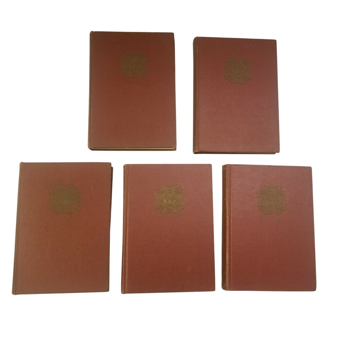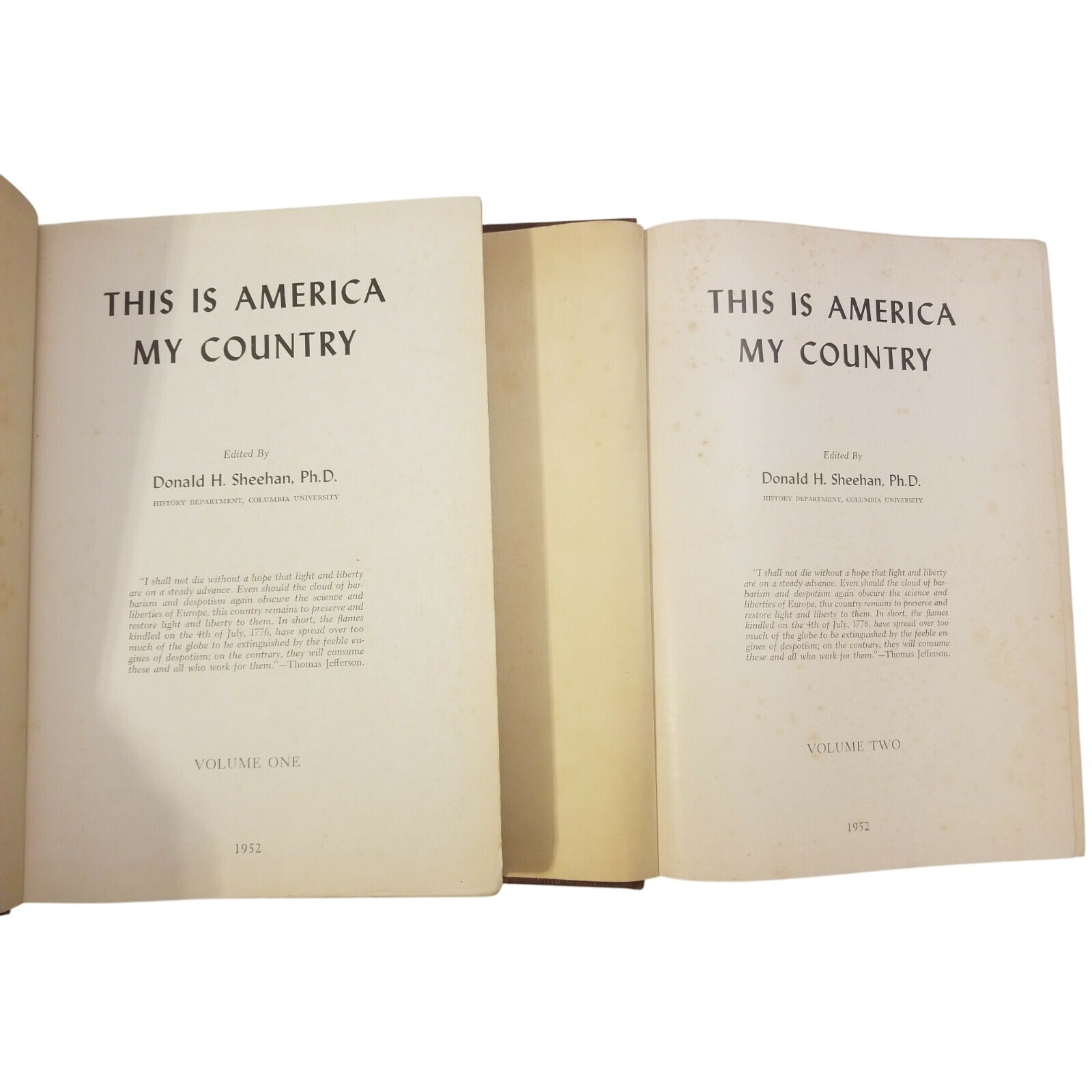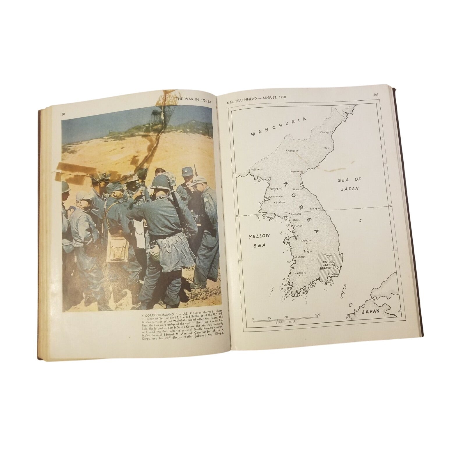 This set includes 5 vintage hardcover books from the Veterans of Foreign Wars Pictorial Histories series along with This Is America My Country. The collection features historical overviews of the Korean War, World War II, and American culture, complete with maps and photographs.
