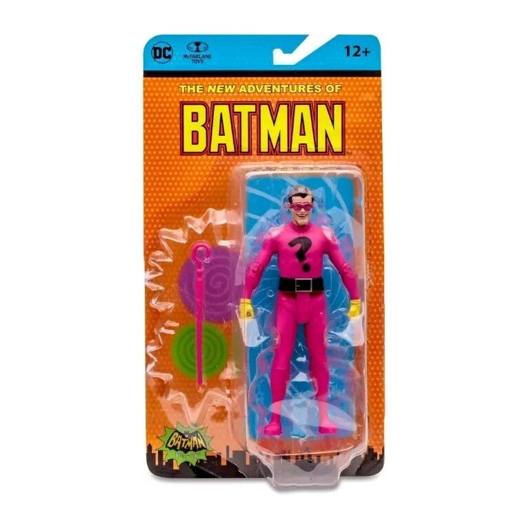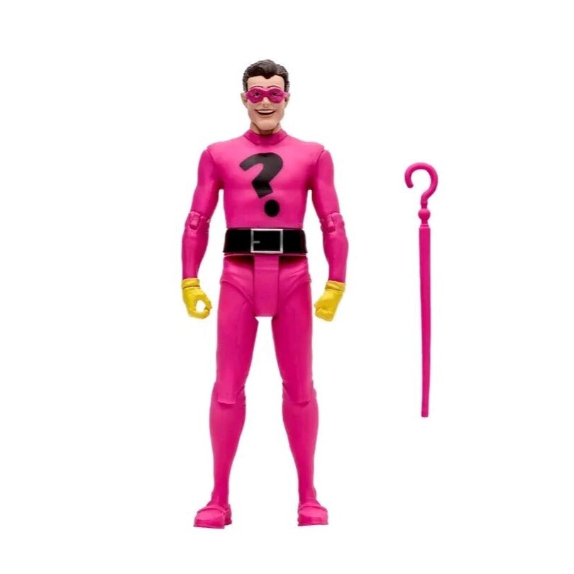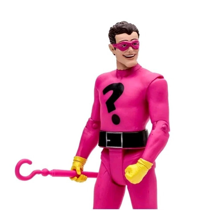 This collectible figure captures The Riddler in his vibrant pink suit, complete with a matching cane accessory. Designed for fans aged 12 and up.