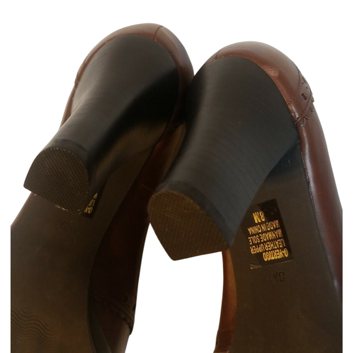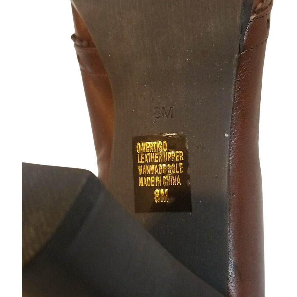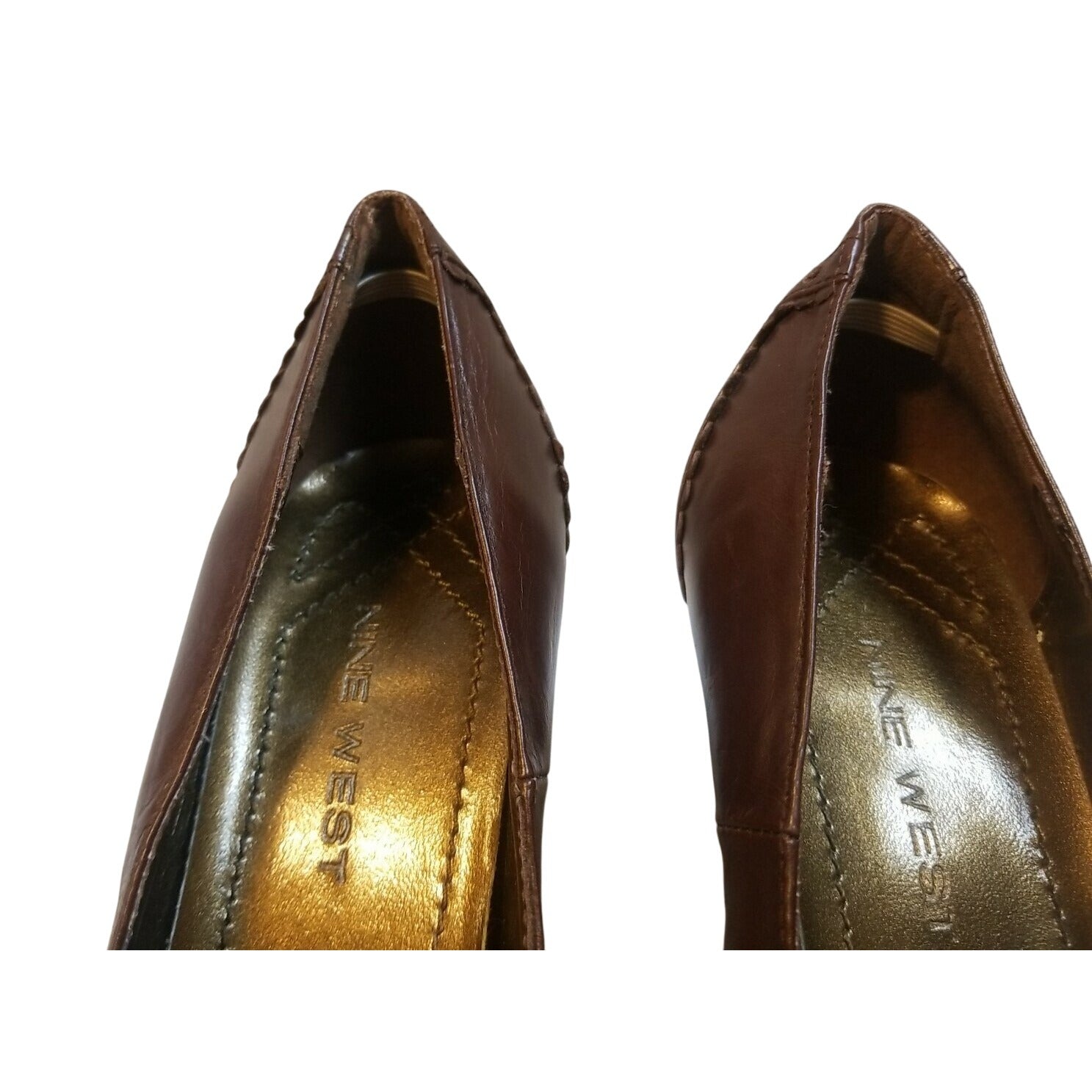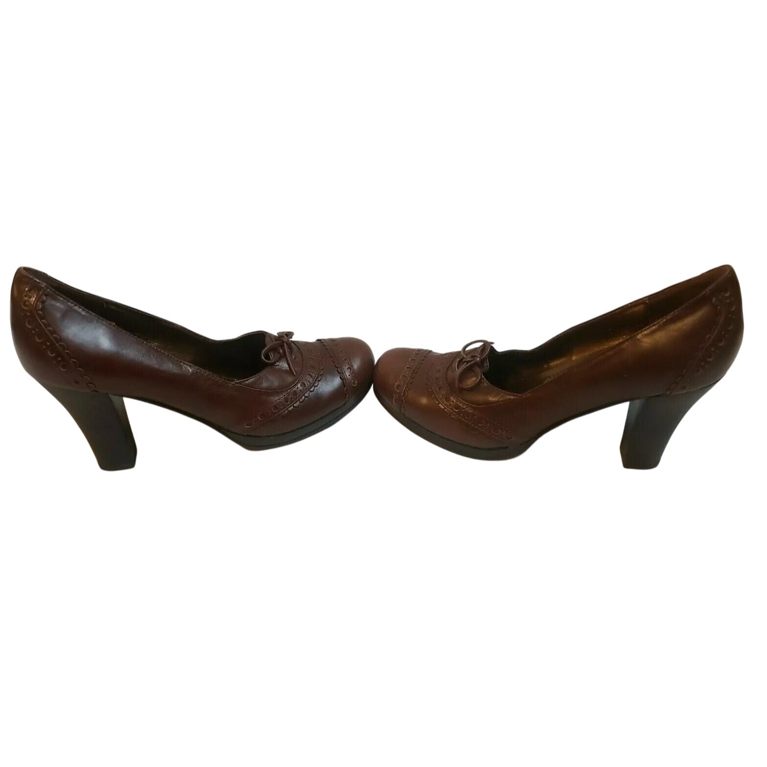 Nine West Brown Leather Heeled Pumps With Decorative Stitching & Lace Detail Size 7.5