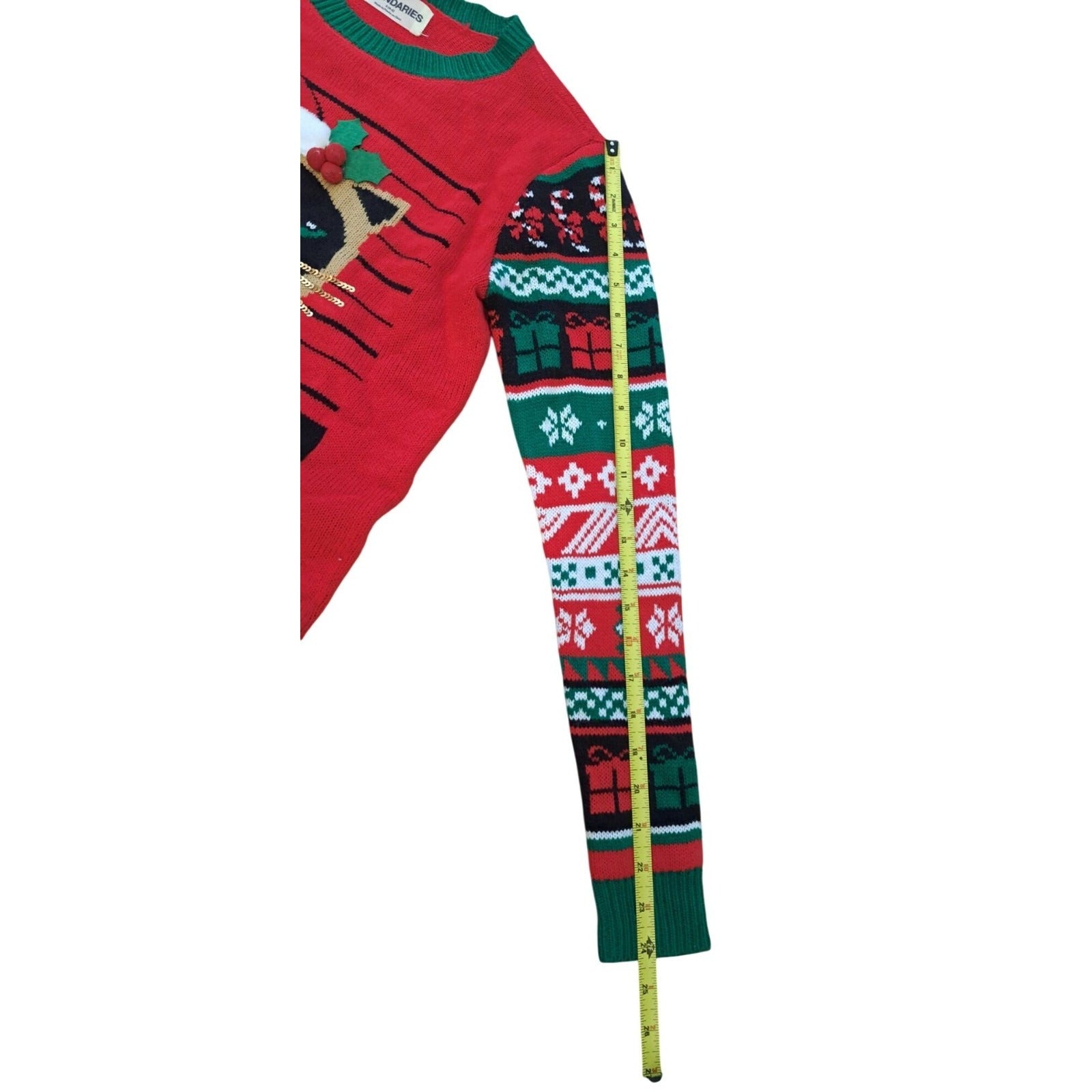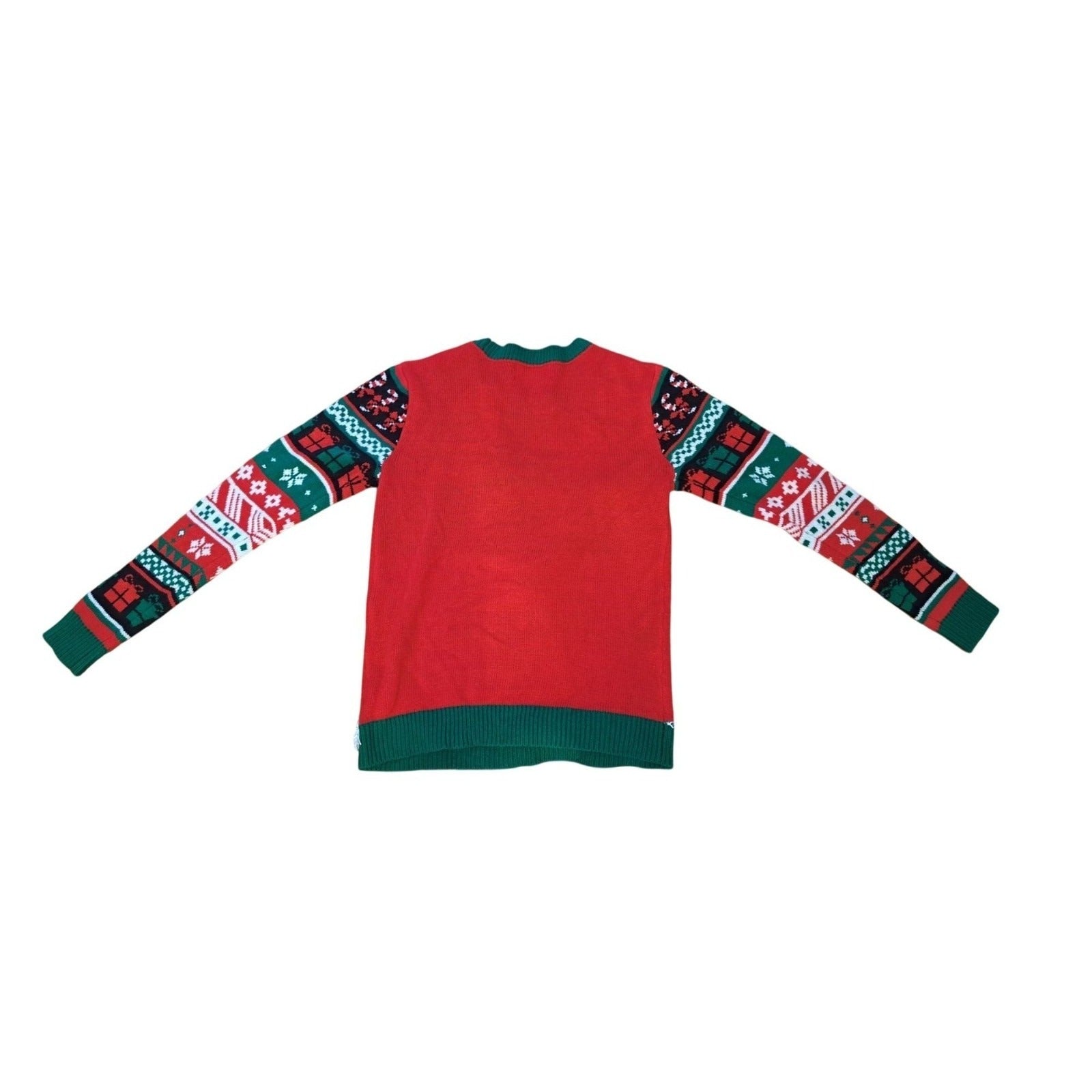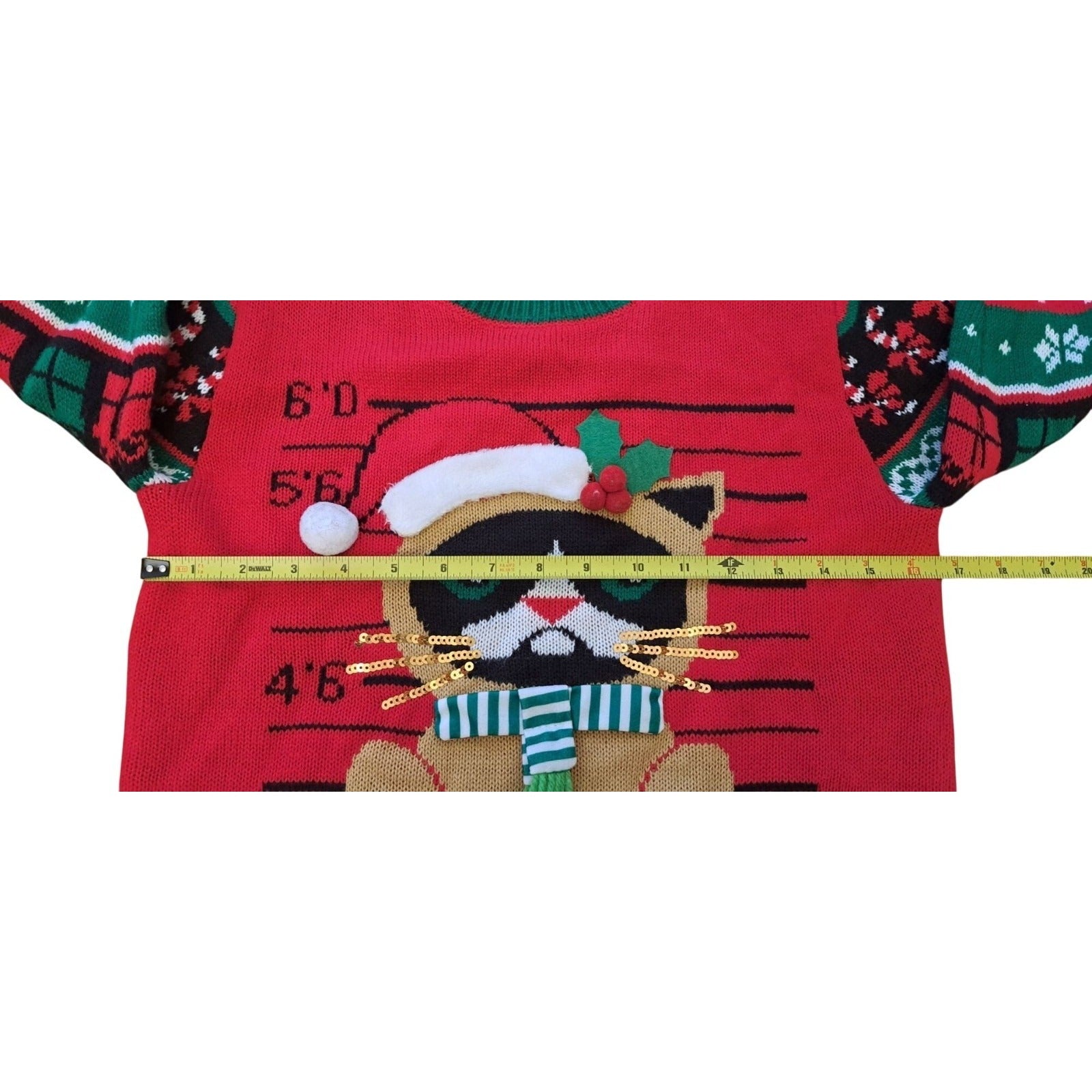 No Boundaries Cat Knocked Over The Tree Ugly Christmas Holiday Sweater Small 4-6This sweater features a humorous "Knocked Over The Tree" design with a festive cat graphic. Its vibrant colors and unique pattern make it a standout choice for holiday gatherings.