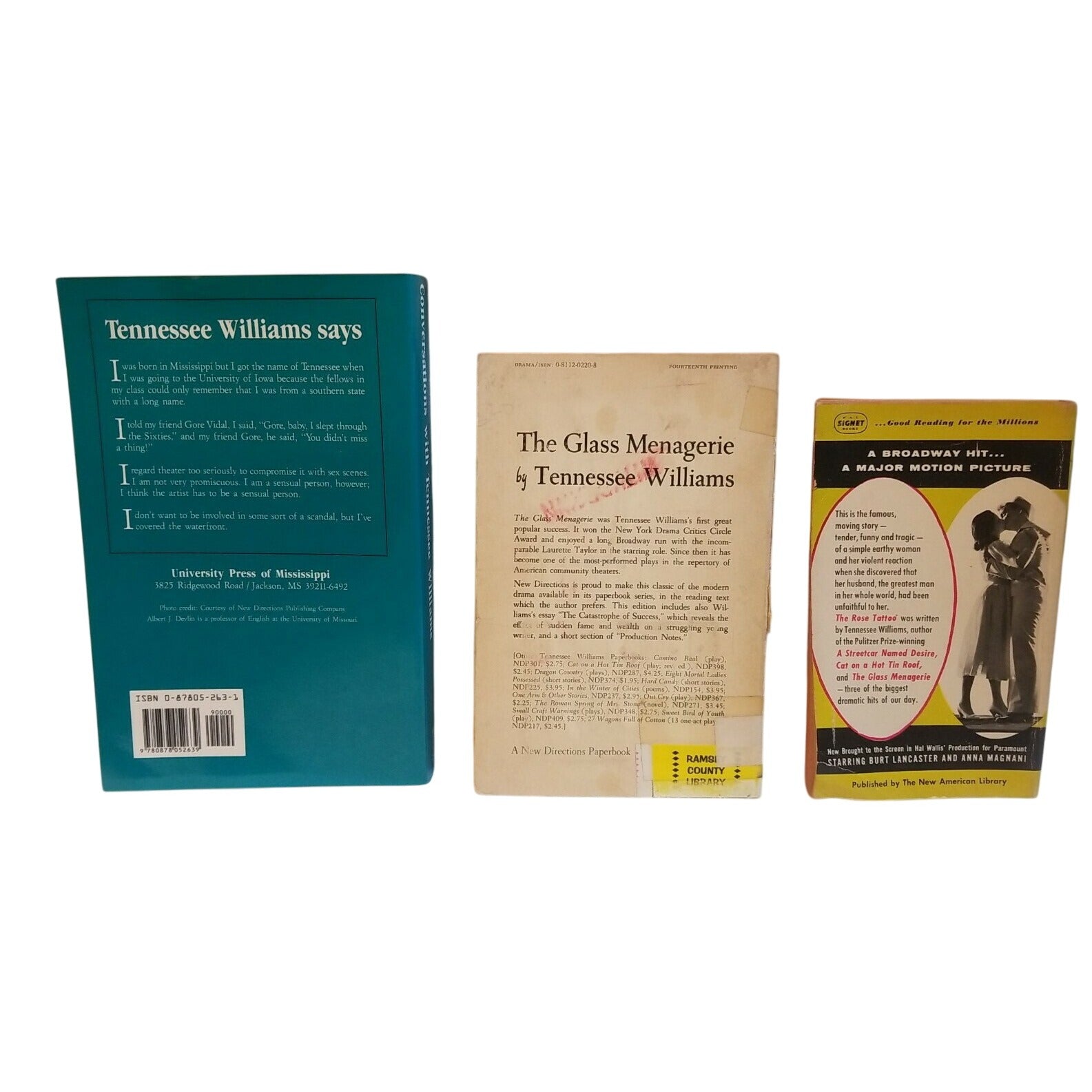 • Includes "Conversations With Tennessee Williams," "The Glass Menagerie," and "The Rose Tattoo"