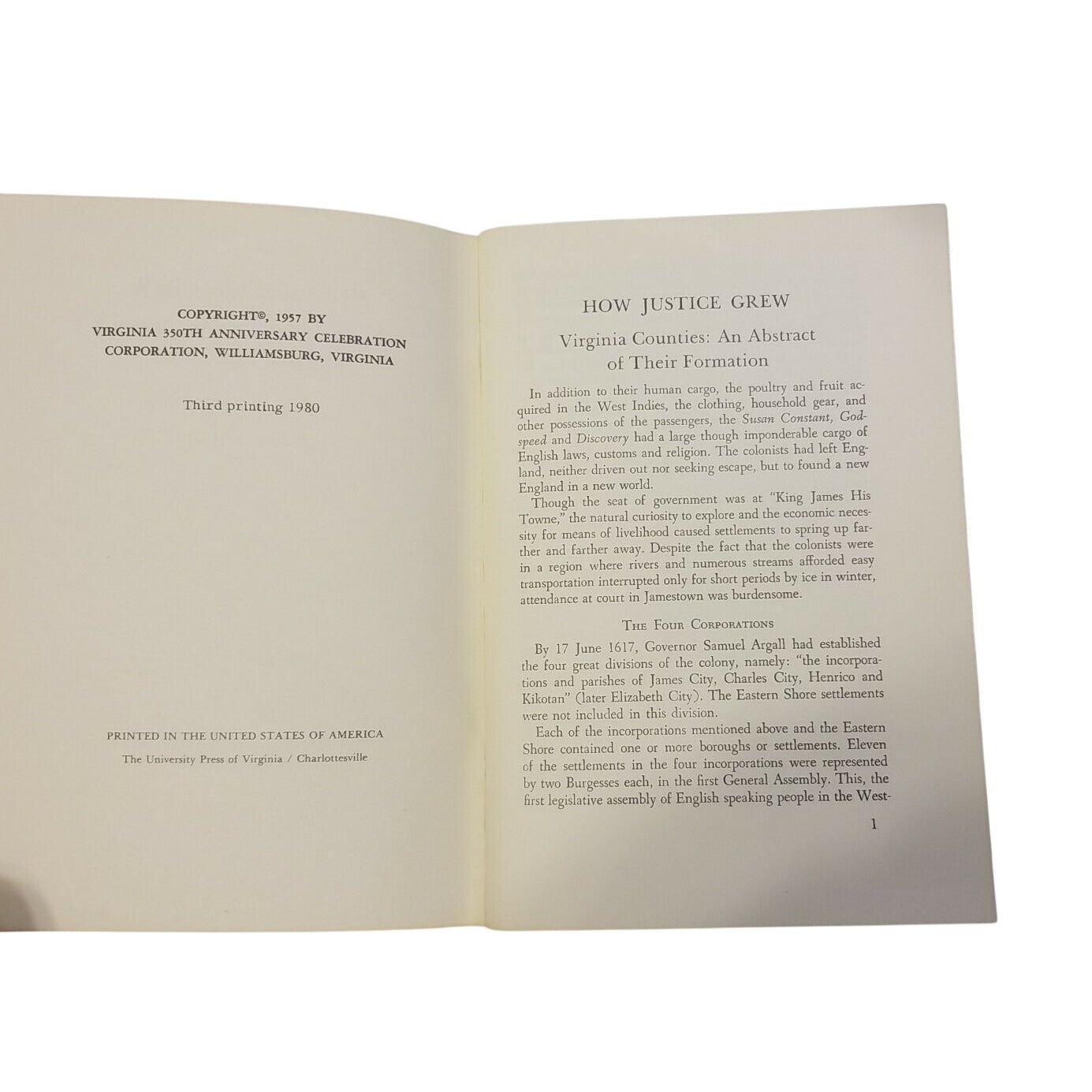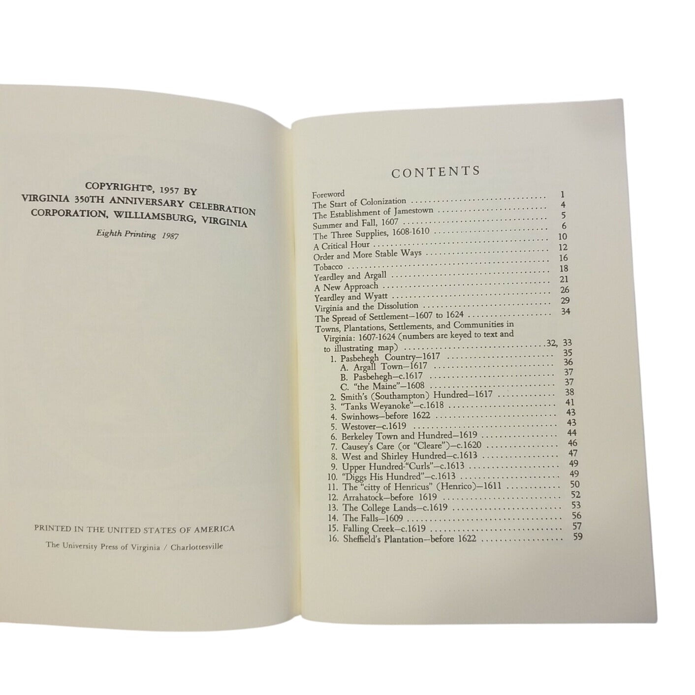 This historical pamphlet details the early settlement of Virginia, exploring critical events and developments from 1607 to 1624.• Eighth printing,... Read more