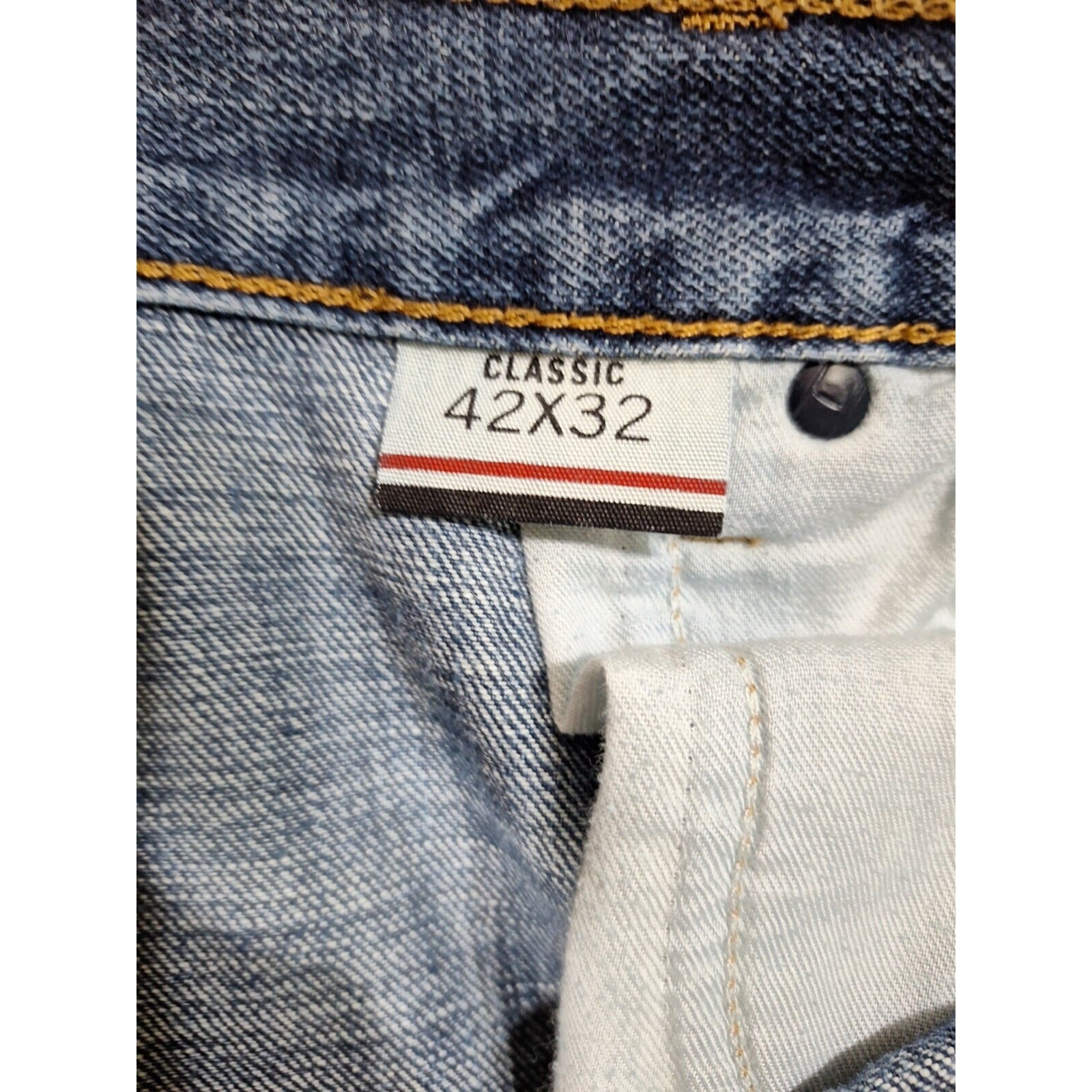 Durable and versatile, these men’s classic fit denim jeans feature a timeless design suitable for various casual or professional settings.